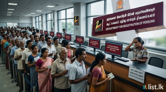 The Department for Registration of Persons (DRP) has announced the restriction of most of its services, including general operations and front office functions, due to a sudden computer system breakdown. Effective April 8th, the department will only provide a limited one-day service for issuing National Identity Cards (NICs), exclusively for applicants with urgent requirements. This restricted service is available at both the head office and all provincial offices. All other services, such as the verification of NIC details for institutions and English translation services, remain suspended. Commissioner General M.S.P. Suriyapperuma confirmed that efforts are currently underway to restore the system, with normal operations expected to resume until further notice.