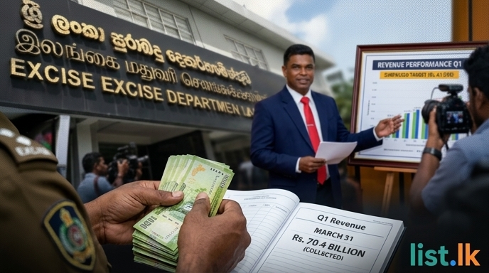 The Sri Lanka Excise Department has reported a record revenue collection for the first quarter of the current year, significantly exceeding its targets. Commissioner General M.B.N.A. Premaratne announced that the department collected Rs. 70.4 billion by March 31st, surpassing the Rs. 61.95 billion target for the period by 13.6%. This marks a 14.8% increase compared to the first quarter of the previous year.