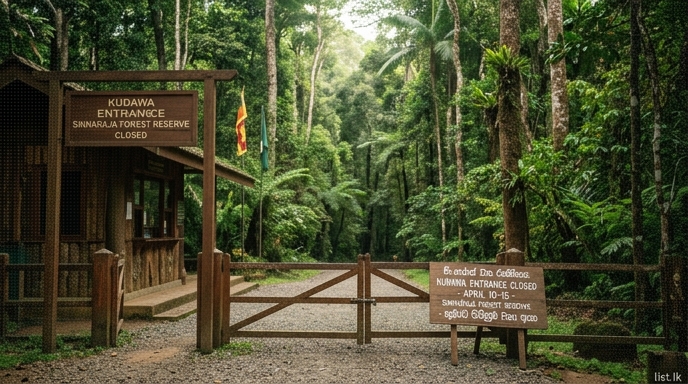 The Kudawa main entrance to the Sinharaja World Heritage Forest Reserve is scheduled for a six-day closure, effective from April 10 until April 15, 2026. This temporary measure has been announced by the Sinharaja Forest Reserve Controller's Office, aligning with the Sinhala and Tamil New Year holiday period. Sinharaja Forest Controller S. De Nimal confirmed that the entrance will reopen to visitors on April 16. During this specified period, tourists will not be permitted to access the reserve through the Kudawa entrance.