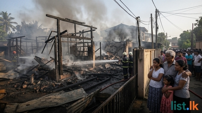 Moratuwa Fire Destroys Woodworking Workshop and Adjacent Home