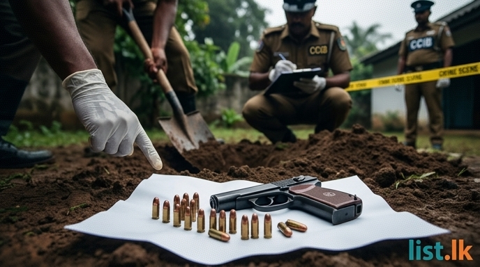 A Russian-made 9mm pistol and 15 live rounds of ammunition were recently discovered buried in the garden of Karandeniya Raju's residence in Meetiyagoda. The discovery was made during a specialized search operation conducted by the Central Crime Investigation Bureau (CCIB) of the Sri Lanka Police. Karandeniya Raju, identified as an organized criminal and brother of 'Karandeniye Sudda,' is currently in custody, having been recently extradited from India. Authorities suspect the recovered firearm may have been used in multiple killings allegedly orchestrated by Raju.