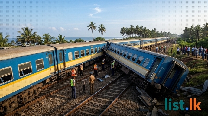 The Sagarika express train, traveling from Beliatta to Maradana, derailed this morning, April 24, 2026, near the Wadduwa Railway Station. The incident, confirmed by the Department of Railways, resulted in both tracks on the coastal line being completely blocked, halting all train services in both directions. Reports indicate the train separated into two parts with carriages derailing, causing considerable damage to both the train and the railway infrastructure. While there were no major injuries reported, a few passengers who sustained minor injuries were hospitalized for treatment. Commuters on the coastal line are experiencing significant delays and disruptions.