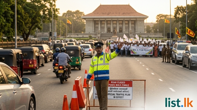 A special traffic plan will be enforced in Colombo on April 28, 2026, to facilitate the conclusion of the 'Walk for Peace Program Sri Lanka'. The event will culminate with a ceremony at Independence Square, Colombo 07, scheduled for 4:00 PM. The ceremony is expected to be presided over by President Anura Kumara Dissanayake. The Colombo Traffic Division, under the Sri Lanka Police, will implement the traffic restrictions, which will commence from 11:00 AM. Several key routes will be affected, including the stretch from Bandaranayake Roundabout to Baseline Road (Borella Junction), Maradana Road, Nandadasa Kodagoda Mawatha, Ward Place, Soysa Roundabout, Lipton Roundabout, and Dharmapala Mawatha.