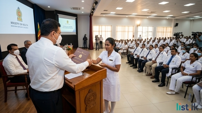 The Ministry of Health is scheduled to appoint 154 new health professionals across various categories tomorrow, October 10th. The official ceremony will commence at 11:00 AM at the Outpatient Department Auditorium of the National Hospital, Colombo. Health and Mass Media Minister Dr. Nalinda Jayatissa will preside over the event, with Ministry Secretary Specialist Doctor Anil Jasinghe and other officials also in attendance. These appointments are intended to strengthen human resources and enhance the quality of health services nationwide. The new recruits include 69 Radiation Technicians and 10 Audiology Technicians, who have successfully completed their degrees and six-month training programs. Additionally, appointments will be made for Health Laboratory Assistants and Entomology Field Attendants within the Primary Semi-Skilled service category.