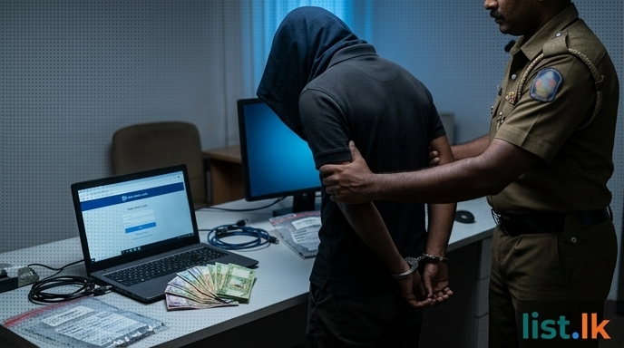 Police have arrested a 22-year-old man from Minuwangoda in connection with a financial fraud involving a fake website designed to mimic a private bank's official portal. The suspect is alleged to have defrauded Rs. 1,000,024 through the fraudulent site. The arrest was made yesterday (April 20) by the Computer Crimes Investigation Division, North Western Province Unit, following an investigation initiated after a complaint on February 16, 2026. He was produced before the Wariyapola Police Station and is scheduled to appear before the Kurunegala Magistrate's Court today (April 21) for further proceedings.