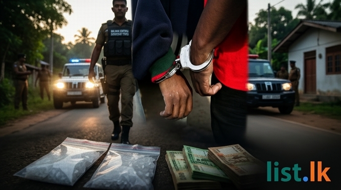 In a significant operation, two close associates of notorious organized criminal and large-scale drug trafficker Salindu Malshitha, known as "Panadura Kudu Salindu," were arrested in the Payagala area. The arrests, made in the early hours of April 21st by the Walana Central Anti-Corruption Striking Force, targeted individuals identified as Patum (alias 'Peththa') and Kavindu (alias 'Kaviya'). Preliminary investigations revealed the suspects had been secretly residing in Nirmalawatta and Kumburugoda, distributing narcotics in surrounding regions. Authorities seized a total of 90,520 milligrams of 'Ice' (crystal methamphetamine) during the raid, with an estimated street value exceeding one million rupees. Patum was apprehended with 42,350 mg of the drug, while Kavindu was found with 48,170 mg.