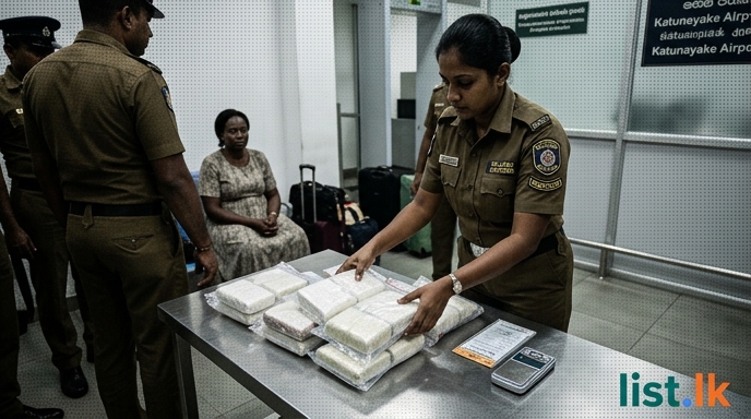 A 47-year-old Ugandan businesswoman was arrested by the Customs Narcotics Control Division at Katunayake International Airport on April 12. She was apprehended for attempting to smuggle a significant quantity of cocaine, valued at approximately Rs. 12.33 million, into Sri Lanka. The illicit drugs were discovered hidden within her body following a special inspection. The suspect had traveled from Kampala, Uganda, through Doha, Qatar, arriving on Qatar Airways flight QR-664 at 9:30 AM. Authorities stated the arrest was made based on prior intelligence and risk analysis.