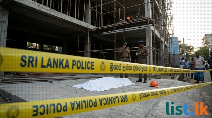 A 27-year-old man from Talawakelle died on Monday, April 13th, after falling from the third floor of an under-construction multi-story building on C.V. Avenue in Kollupitiya. Initial investigations indicate the incident occurred when the worker slipped while installing an iron part using scaffolding. The victim's body has been placed in the mortuary at the Colombo National Hospital. The Kollupitiya Police are conducting further investigations into the incident.